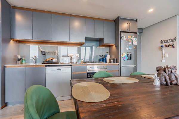 The contemporary kitchen is a chefs delight, featuring Caesarstone countertops, a SMEG oven and gas hob, and space for two appliances. You also have a dedicated coffee/drinks station located seamlessly between the kitchen and lounge area. Both bedrooms are generously sized, each with a luxurious en-suite bathroom and ample cupboard space, comfortably accommodating king-size beds.