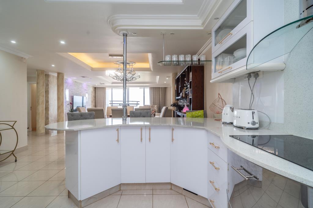 Exclusive luxurious and ideally situated with direct Umhlanga beach and promenade access. A short walk to the cosmopolitan atmosphere of the Village, with shopping malls, international restaurants and bars. The 209M2 apartment is chic, spacious, and open plan with breathtaking sea views. The kitchen is totally redone with high gloss white cabinets and white Caesar stone counter tops, stunning views from the dining and lounge areas. All three bedrooms are generous. The entertainment patio is perfect for the whole family to enjoy and extends to manicured landscaped gardens overlooking the Indian Ocean. Two lock-up garages. Please view virtual tour. Call to make an appointment to view.