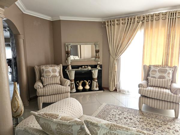 The living spaces in the house have a relaxed flow, with two lounges, a dining room, and a kitchen that all open onto a large covered patio. Plus a bonus room that would be ideal as a study or extra bedroom, entertainment space, whatever you need it to be. The patio overlooks the sparkling pool, lush garden, and bar. There is a large glass sun-room providing the perfect space for entertainment, regardless of the weather. The property also includes a spacious office or third lounge.