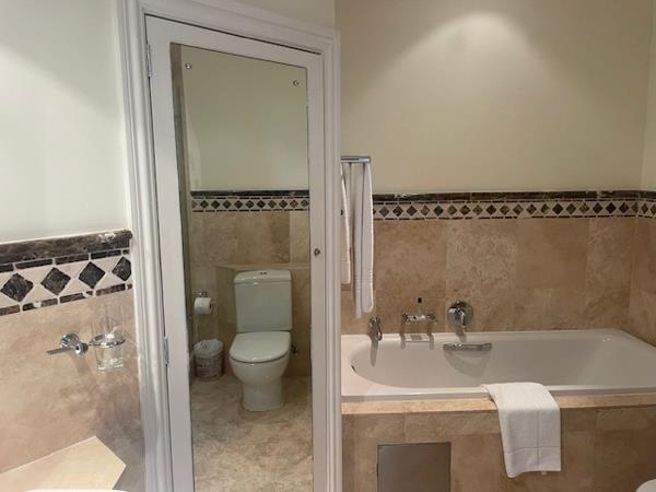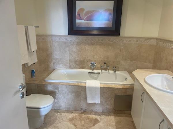 2 spacious bedrooms, one overlooking the ocean with an en-suite bathroom with upmarket travertine tiles.