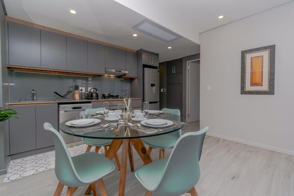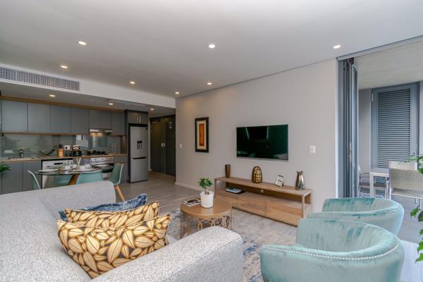 Contemporary Umhlanga living. The smart-ready apartment offers an uninterrupted view of the Indian Ocean to the south with Moses Mabida stadium and the Durban city skyline in the distance as well as calming sunset views to the west.