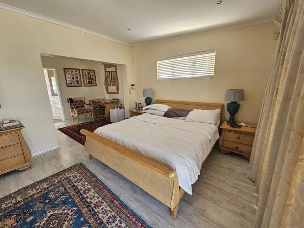 -A large second master suite currently let as a studio flatlet, complete with its own lounge, kitchenette, full en-suite bathroom, and direct access to the garden and pool.
