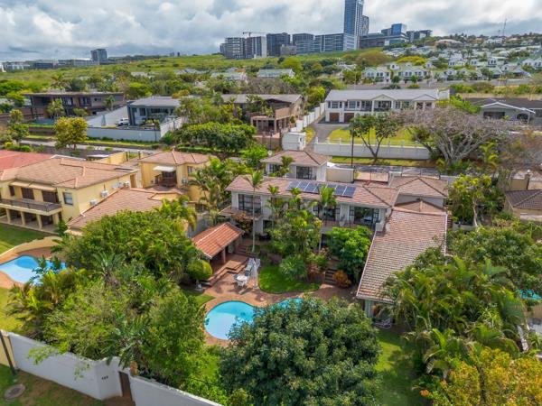 This exceptional home boasts 8 spacious en suite bedrooms, a breakfast nook and separate scullery. Currently a successful BandampB but lends itself to a large family home in a much sought after area. The latest solar system and Jo-Jo tanks have been installed. The floor plan also incorporates a separate study and board room, undivided reception areas that flow onto an entertainment patio with built in braai, bar, pool creating style and sophistication. Double garage and extra parking for 6 vehicles completes the picture of a perfect lifestyle. Close to beaches, Gateway, and the Umhlanga promenade, This home offers excellent security, easy access to the M4 and La Lucia Mall. A stones throw to all amenities, restaurants, shops, schools, golf courses, office parks and 15 minutes to King Shaka Airport. Include this home on your viewing list- a MUST to see!