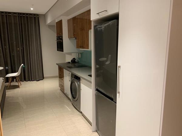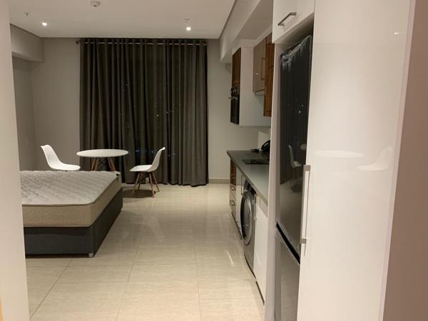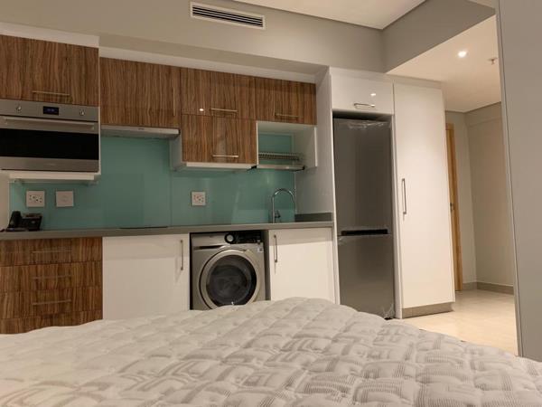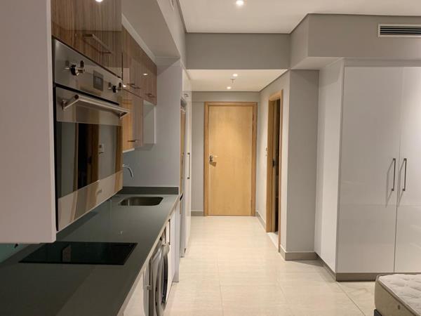 Step inside to find an open-plan layout flooded with natural light, featuring high-end finishes, sleek cabinetry, and integrated appliances. The living and sleeping space flows seamlessly, complemented by a modern bathroom and well-designed storage. Large windows frame sweeping views of the Umhlanga skyline and coastline, bringing a sense of calm and luxury to city living.