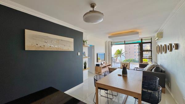 The spacious dining and lounge area flows seamlessly onto a full-length balcony, ideal for enjoying the ocean views. Remote-controlled fans and lights are fitted in the lounge and both bedrooms for added comfort and convenience.