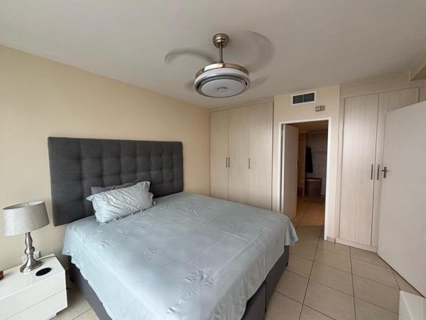 Each of the three bedrooms is generously proportioned and meticulously finished. The master suite features direct access to the balcony through stackable sliding doors, inviting in natural light and stunning sea views. The en-suite bathroom includes a luxurious corner bathtub, walk-in shower, and elegant fittings. All bedrooms are equipped with central air-conditioning and modern Bluetooth ceiling fans, ensuring comfort year-round.