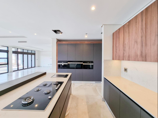 Enter on the first level road level to a grand open-plan dining and lounge area flowing onto a balcony that overlooks the sparkling pool and breathtaking sea views. The high-end kitchen is fitted with Miele appliances, exquisite finishes, and a tucked-away scullery. This level also offers a guest bedroom with en-suite, plus a separate officestudy that can easily serve as a 5th bedroom.