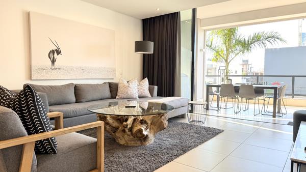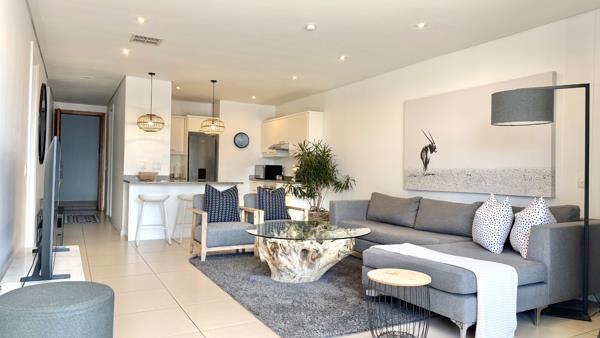 Step into a bright, open-plan living space featuring high-end, contemporary finishes throughout. The spacious lounge flows seamlessly onto a large veranda and braai area — ideal for entertaining while enjoying views of beautifully maintained gardens and access to a rooftop communal swimming pool.