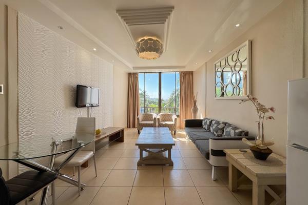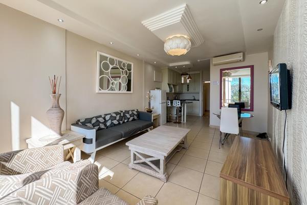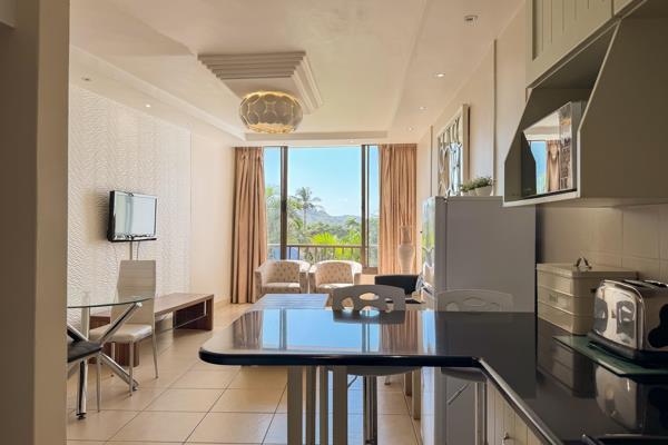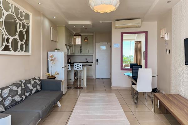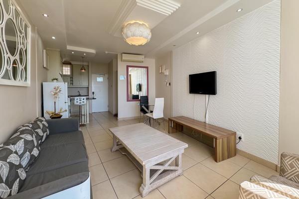 SOLE MANDATE | Two bedroom holiday apartment in Breakers Resort, Umhlanga. This well presented unit offers an open plan living and dining area on entrance. Sliding windows open out to elevated views across the communal gardens and coastal forest to the ocean.