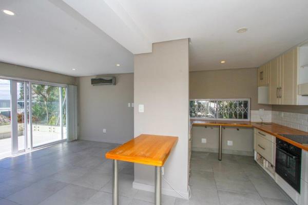 This light-filled home features large modern light grey tiles throughout and elegant white American shutter blinds, creating a stylish, serene atmosphere. The open-plan kitchen is fully plumbed for two appliances and accommodates a double-door fridge, perfect for modern living and entertaining.