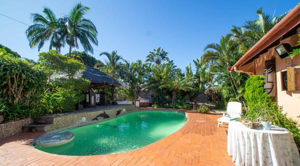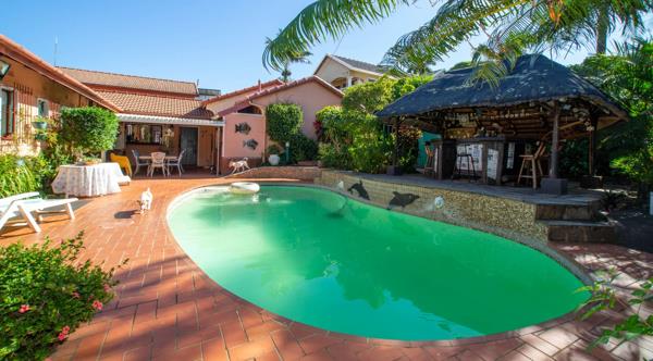 Situated on one of Umhlangas most sought-after roads, this 6-bedroom home has so much to offer. This is a corner property, set on dead level land with the main home consisting of 3 beds, 6 baths, spacious separate dining room and lounge, both of which open onto a lovely garden with slight sea and Umhlanga village views. The kitchen leads out onto the entertainment area, pool, jacuzzi, koi pond, built in bar and to the 2nd double garage and 2nd entrance as the property has two separate entrances. With easy conversion by removing 1 wall, you will find yourself into the 2nd part of the home with 3 bedrooms. One is downstairs with en-suite, kitchenette and patio, and the upper level has 2 bedrooms, 1 bathroom, kitchenette and deck which overlooks the garden and slight sea views. This home also has staff quarters. This home is run on solar panels.