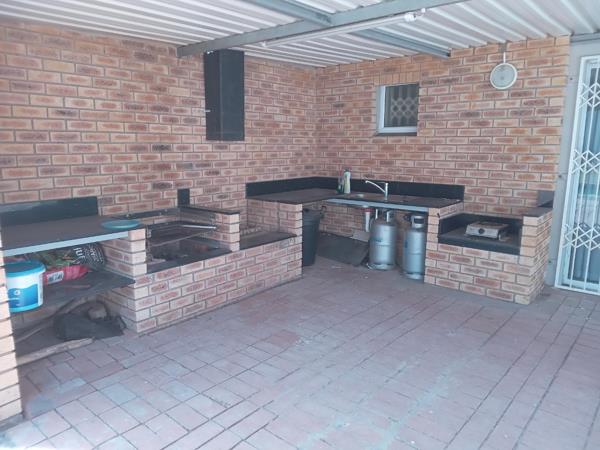 With ample parking for up to 10 cars and including a double garage. Enter into the first lounge which overlooks a huge garden, onto the family room and very spacious dining room. The kitchen is brand new with lots of counter top and cupboard space and flows out into a large back garden with sparkling pool and entertainment area. There are 3 bedrooms, a family bathroom and MES. All interior lights are motion controlled, there are staff quarters, additional storage in the garage, and the home is tiled throughout.