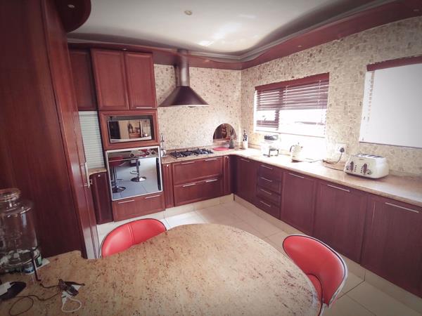 Grand entrance with formal lounge, dining room, Tv lounge, office and private bar area with built in braai that leads to the pool and garden. Spacious gourmet kitchen with separate scullery.