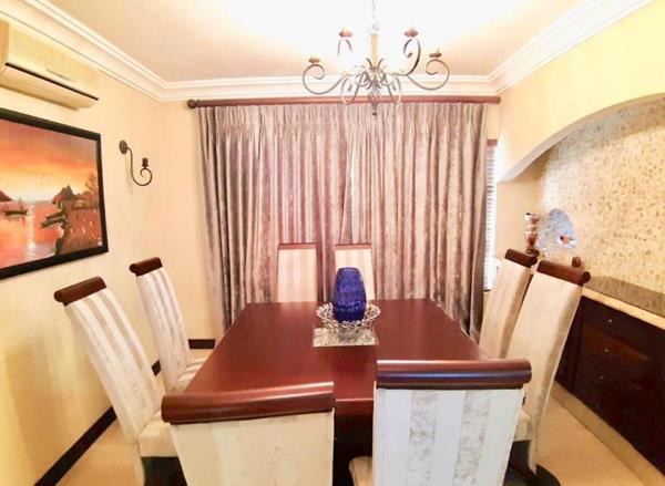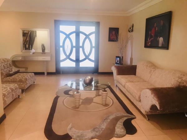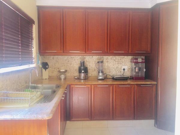 This beautifully presented Tuscany style home boasts an open plan living that provides an effortless flow from indoors to outdoors. Balancing well with an entertaining area with a well-manicured garden overlooking a swimming pool. The elegant kitchen offers lots of cupboard space opening onto a scullery with a backdoor that leads onto a practical backyard area. This home is ideal for a large family or as a guest house for extra income. The main house offers four bedrooms , all with en-suite bathrooms. All the bedrooms have sliding doors leading to the lush garden and the master bedroom has a walk in closet and full bathroom with his and hers vanities. There is a flatlet upstairs with private access, bragging a spacious living area, kitchen and two bedrooms with en-suites. Call me for a Viewing to this home located nearby Gateway Mall, hospitals and schools. Residents can also enjoy an easy commute into the vibrant Umhlanga Village and swimming beaches.