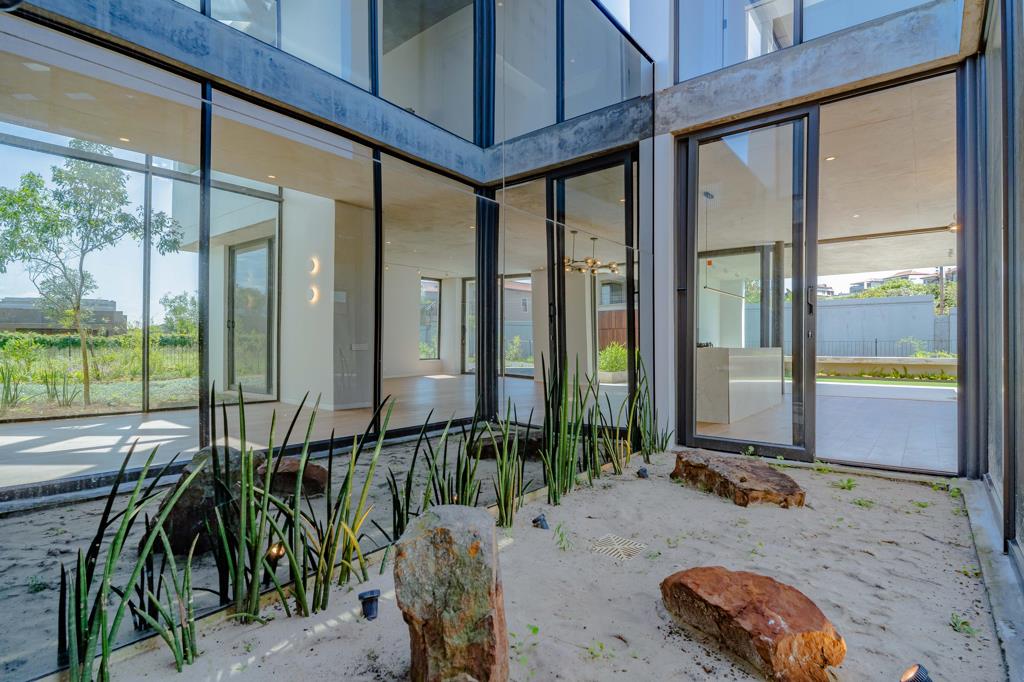 Spanning across a generous property size of 1039m2, the house boasts a spacious living area of 690m2. The architectural prowess is evident from the moment you step through the entrance, where a feature concrete and oak staircase, adorned with a frameless glass balustrade, serves as a centrepiece, harmonizing natural elements with modern aesthetics. The zen garden at the heart of the home is a unique indoor garden feature that allows natural light into the house.