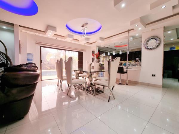 Entertainment is paramount with 4 generously proportioned, fully tiled entertainment rooms ideal for family gatherings and relaxation. Throughout the home, air conditioning maintains a refreshing ambiance. Unique touches such as feature lighting, ornate ceilings, and bulkheads add to the homes allure.