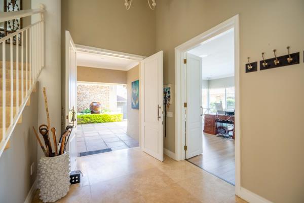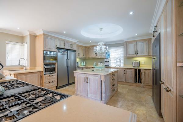 Additionally, a self-contained granny cottage and staff accommodation offer versatility and convenience. Three garages and four open parking spaces, all secured by a remote-controlled access gate, provide ample space for vehicles. Nestled in a secure location with 24-hour boom security, this residence ensures peace of mind and tranquility for its fortunate inhabitants. Experience the epitome of upscale living in this breathtaking abode, where every detail exudes elegance and sophistication.