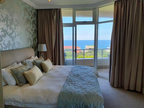 Located in the heart of prime Umhlanga Rocks we present to you a luxurious three bedroom three bathroom fully furnished apartment with 180 degree sea views from a spacious wrap around balcony.