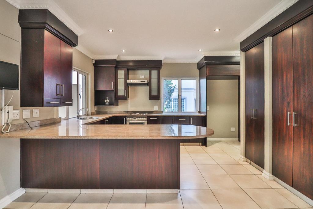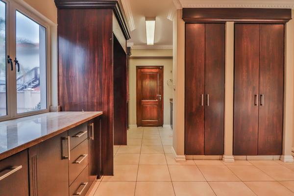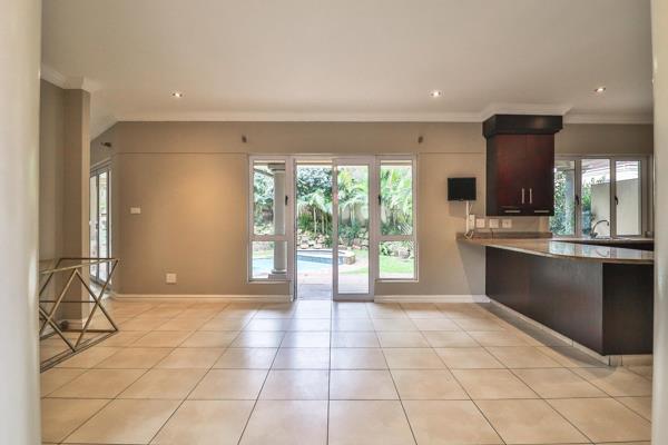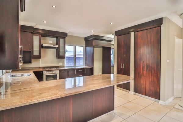The home showcases exquisite modern and Italian style and design throughout. This townhouse features a thoughtfully designed floor plan that maximizes space and functionality. Enjoy an open concept of living and dining areas that are ideal for both everyday living and entertaining. The heart of the home is a well-appointed kitchen with sleek granite countertops, stainless steel appliances, and ample cabinetry. A convenient breakfast nook and a separate dining area make mealtimes a pleasure. The kitchen area also comes with a separate scullery. Very spacious open plan lounge and dining area which leads out to a stunning patio area with a lush green garden and a private sparkling pool. Great for entertaining or for the family to enjoy! The bottom area also has a separate room which can be used as an office space or a smaller bedroom.