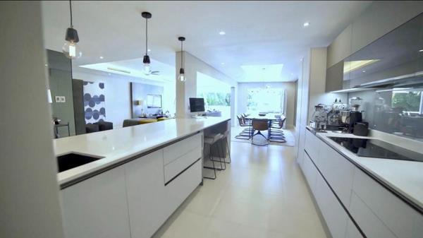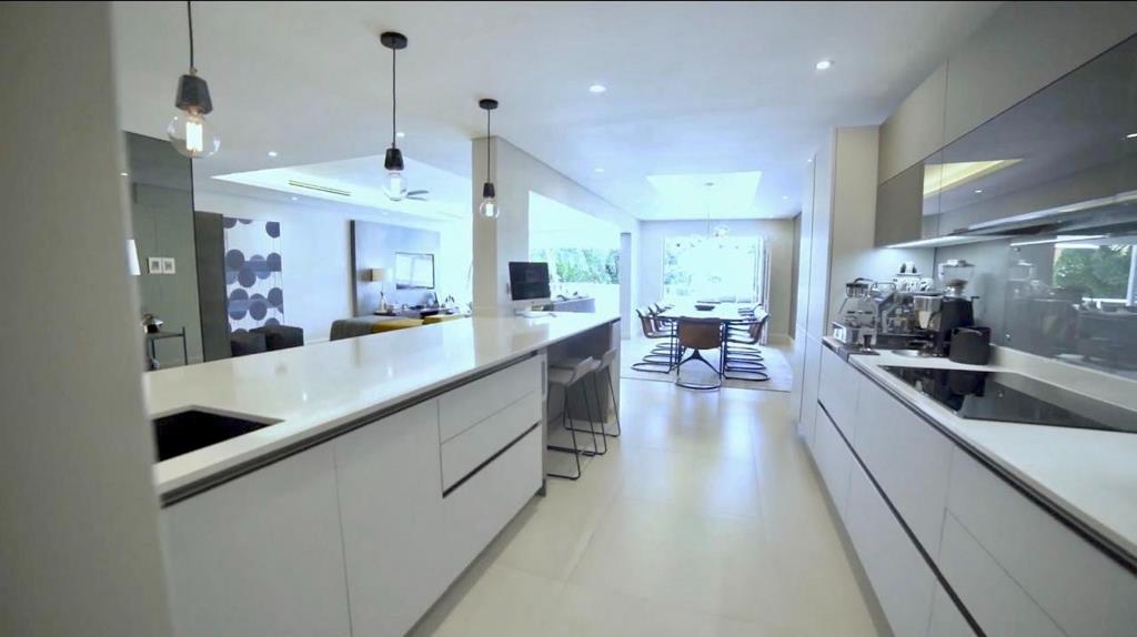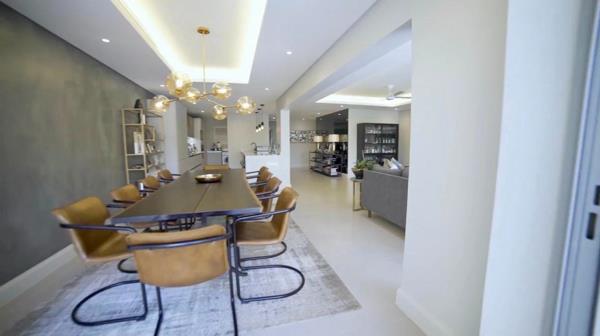 Discover unparalleled coastal living in this exquisite 3-bedroom, 2-bathroom residence within a secure complex in Umhlanga Rocks. Spanning 293 sqm, this home boasts a contemporary open-plan design, seamlessly integrating living, dining, and kitchen areas. Modern finishes, including large format tiled flooring, recessed lighting, and ceiling fans, create a bright, airy ambiance. The sleek white kitchen, with its large island and integrated appliances, is perfect for entertaining.