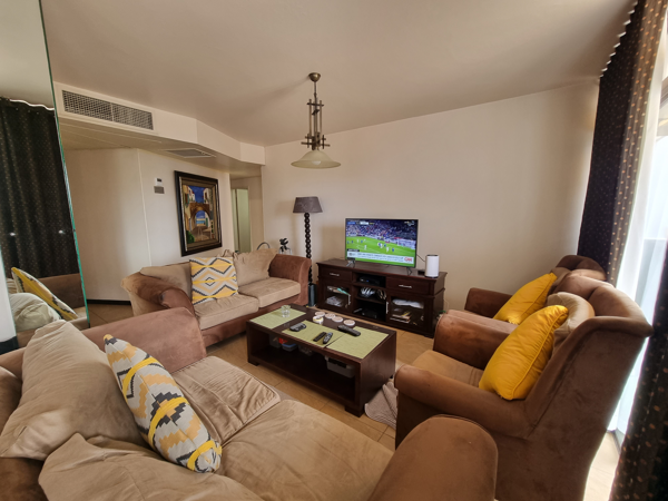 The apartment features 3 generous sized bedrooms and 2 bathrooms, providing ample space for family and friends.