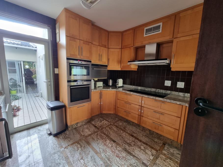 The spacious open-plan living areas are designed for easy living and entertaining, with the dining room seamlessly flowing into a lush garden ideal for relaxing or hosting guests. The fully equipped kitchen features ample cupboard space, ready for you to create your culinary masterpieces.