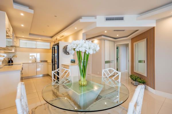 Luxurious Penthouse Apartment in Prime position, on the beach!. Indulge in coastal sophistication with this stunning 2-bedroom, 2-bathroom penthouse apartment, perfectly positioned on Umhlangas main swimming beach. Designed for refined, open-plan living, every inch of this chic residence exudes elegance, flowing seamlessly onto an expansive, private patio with breathtaking 180-degree ocean vistas.