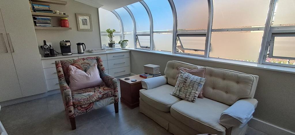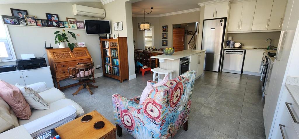 This is a multi-level home and entrance to the first level is into the spacious kitchen and dining area with a quaint TV lounge in a domed section which is very light and airy. The windows are fitted with sheer guard bars to keep the monkeys out. The kitchen is well fitted with ample cupboards, space for a microwave, dishwasher, large fridge and a coffee station. There is a free-standing gas stove which will be included in the sale. A centre island provides space for food preparation. There is a guest loo on this level which includes plumbing for a washing machine.