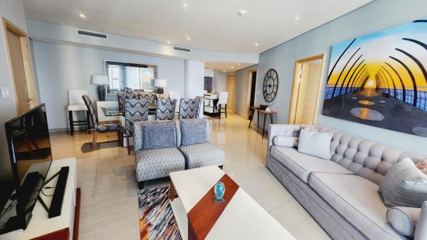 Experience the epitome of elegance and sophistication with this immaculate, modern top-floor 3-bedroom apartment at The Pearls of Umhlanga. Boasting breathtaking sea views and tastefully furnished with the finest décor, this residence offers a lifestyle of unparalleled luxury. As you step inside, you''ll be greeted by an open, airy ambiance accentuated by chic furnishings and stylish finishes. The spacious living area seamlessly transitions into a gourmet kitchen, making it perfect for both entertaining and everyday living. Relax and unwind in the comfort of your own home, or step out onto the balcony to soak in the panoramic views of the azure ocean and sandy beaches below. With the Oceans Mall and upmarket restaurants right at your doorstep, you''ll have endless options for dining, shopping, and entertainment.