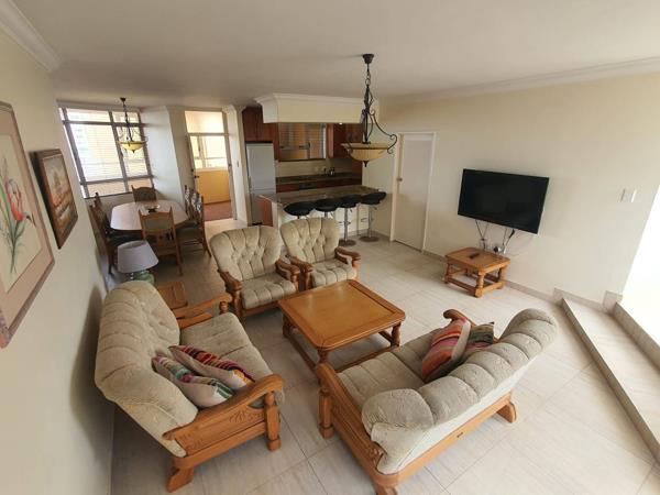 The open-plan living and dining area flows seamlessly into an enclosed patio, where you can soak in spectacular views of the ocean and the vibrant Umhlanga Village. Both generous bedrooms are en suite, ensuring privacy and luxury for you and your guests.