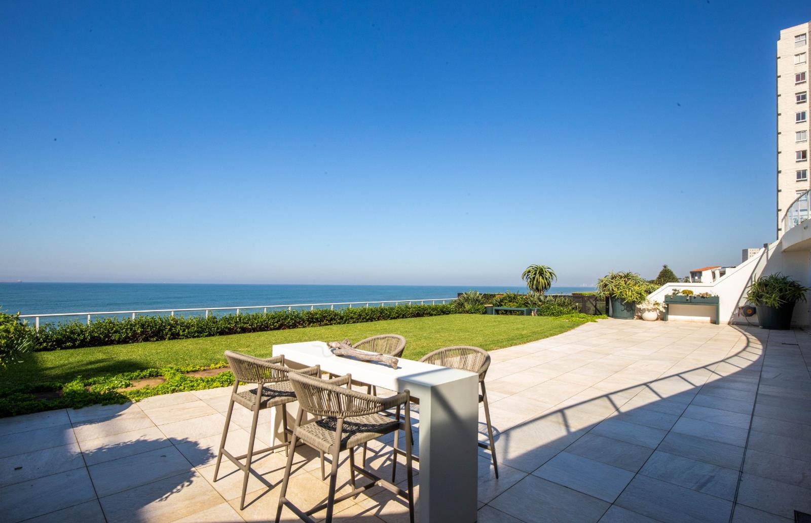 Frontline beach front renovated designer apartment totalling 974m2 breaker and beach views from the expansive level garden only a few steps onto Umhlangas famous promenade and to Umhlangas beaches and the village.