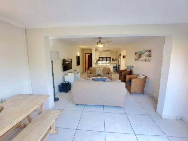 The fabulous and spacious flow from the open plan kitchen to the lounge and dining area opens with stacking doors to a patio and garden area. Easy access to the communal pool and braai area.