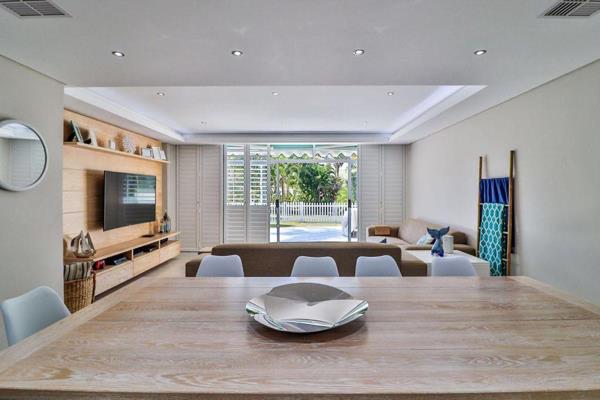 The lounge opens onto a generous patio, perfect for outdoor dining or relaxing with friends. The patio flows into a lush communal garden and sparkling swimming pool. This home is perfect for those seeking a blend of luxury, convenience, and tranquility.