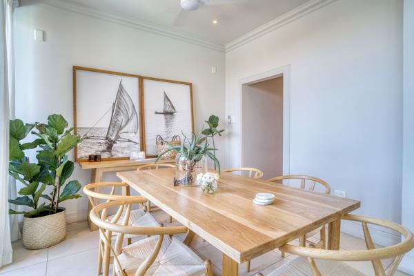 Beautiful uMhlanga, step-less 3 minutes from beach. This renovated two-bedroom apartment is just a short walk from the beach and offers slight sea views. The spacious open-plan living and dining room flows seamlessly from the modern kitchen out onto a wooden deck with a private pool, creating a perfect outdoor space. Both bedrooms, including the main en-suite bedroom, open out onto the deck, enjoying the outdoor views.