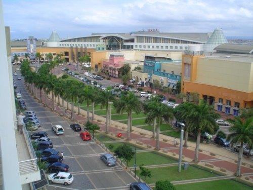Open-plan flow to a balcony overlooking Palm Boulevard and Gateway Mall