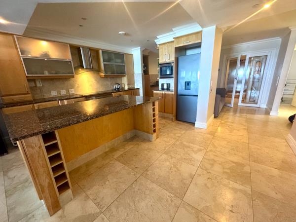 There are only eight apartments in this exclusive block, with magnificent gardens, two communal swimming pools and koi pond. The lift leads right into the apartment, which has breathtaking sea views from the living areas and main en-suite bedroom. The kitchen, dining room and lounge spill onto a patio spanning the width of the apartment. The well-fitted kitchen has a separate scullery. The main en-suite has sliding doors leading to the balcony.