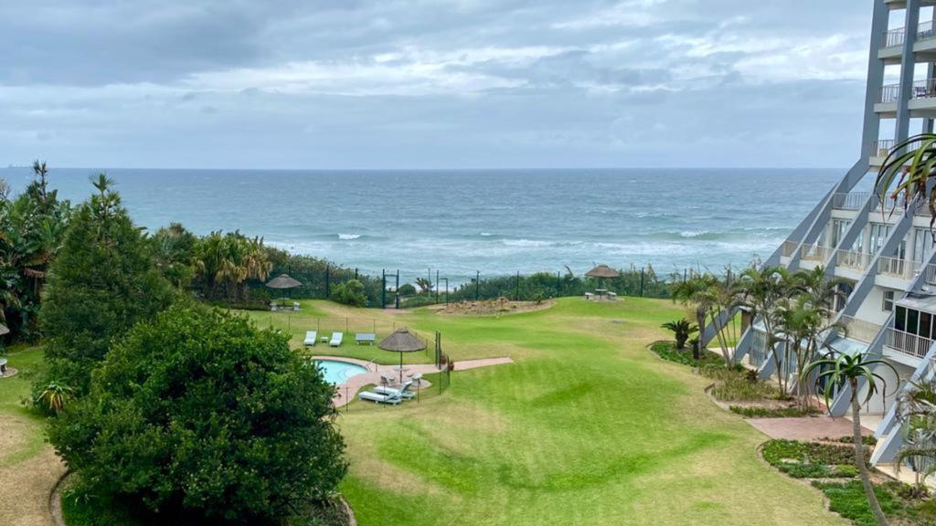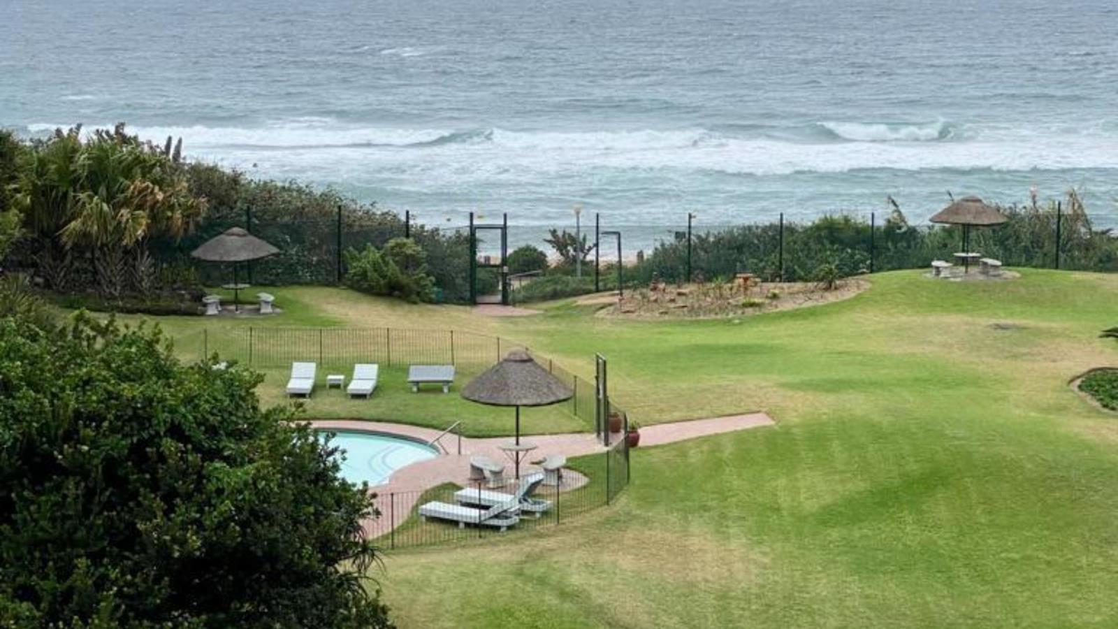 Residents enjoy a resort-style pool set amidst lush, manicured gardens, creating a serene retreat in one of Umhlangas most sought-after complexes.