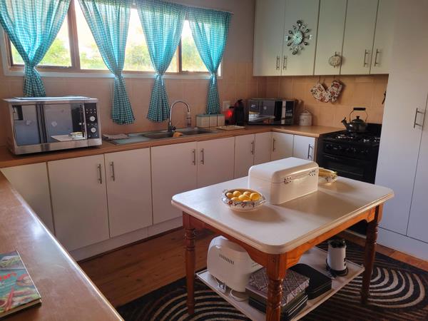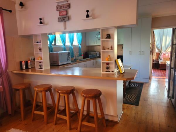 The house features a welcoming open-plan lounge, dining area and kitchen, complete with ample cupboard space. The guest room comfortably accommodates a queen-size bed and includes built-in cupboards. The full bathroom is well-appointed with both a shower and a bath, ensuring comfort for all. The spacious main bedroom offers built-in cupboards and opens onto a generous enclosed patio - ideal for relaxing or easy to transform into a third bedroom if needed.