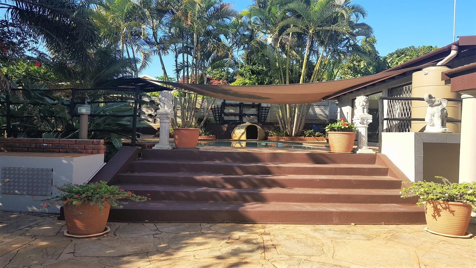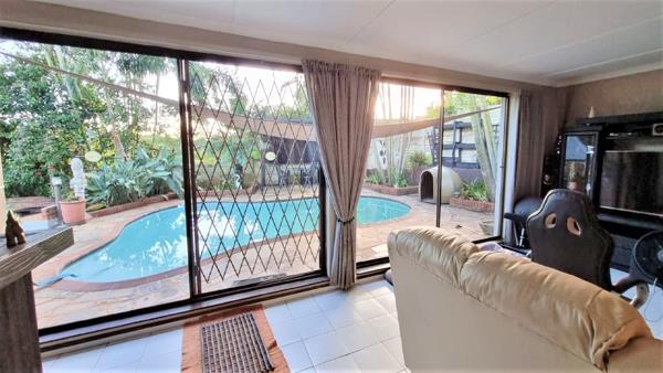 Situated in a quiet residential area of Widenham, the property is a short drive down to the local shops, schools, beautiful golf course, and the squash court. Scottburgh is an estimated 10-minute drive, with a popular main beach schools, hospitals and the mall. This beautiful, large solid home, fully walled, with double garage, electric gate. The property has a neat flat, lovely large lounge area, one bedroom and bathroom. This property has a large family pool, great entertainment area, the building size is an estimate. The property has lovely large, one bedroom flat.