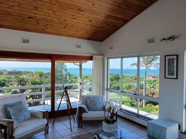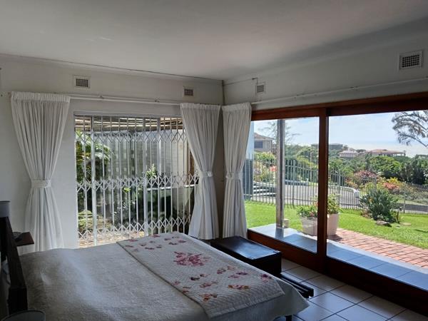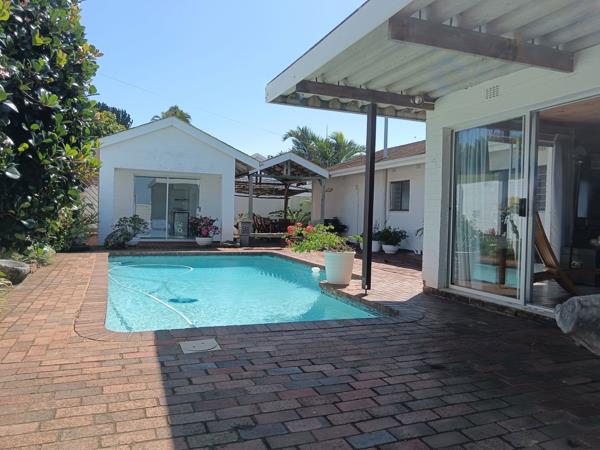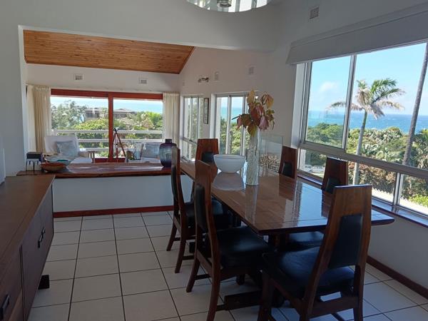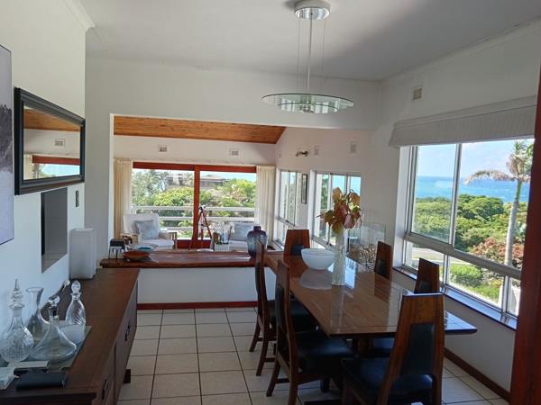 The full package with sea views & furniture!. Enter and feel the peace and homeliness. This magnificently appointed home with excellent security has brilliant sea views from all 3 bedrooms, lounge, dining room and kitchen. Lovely pool and entertainment area leading out from kitchen and family room. Guest suite with separate entrance in the garden plus double garage and staff accommodation. This home has huge glass windows showing off amazing sea views. So bright and airy! Must be viewed to be appreciated.