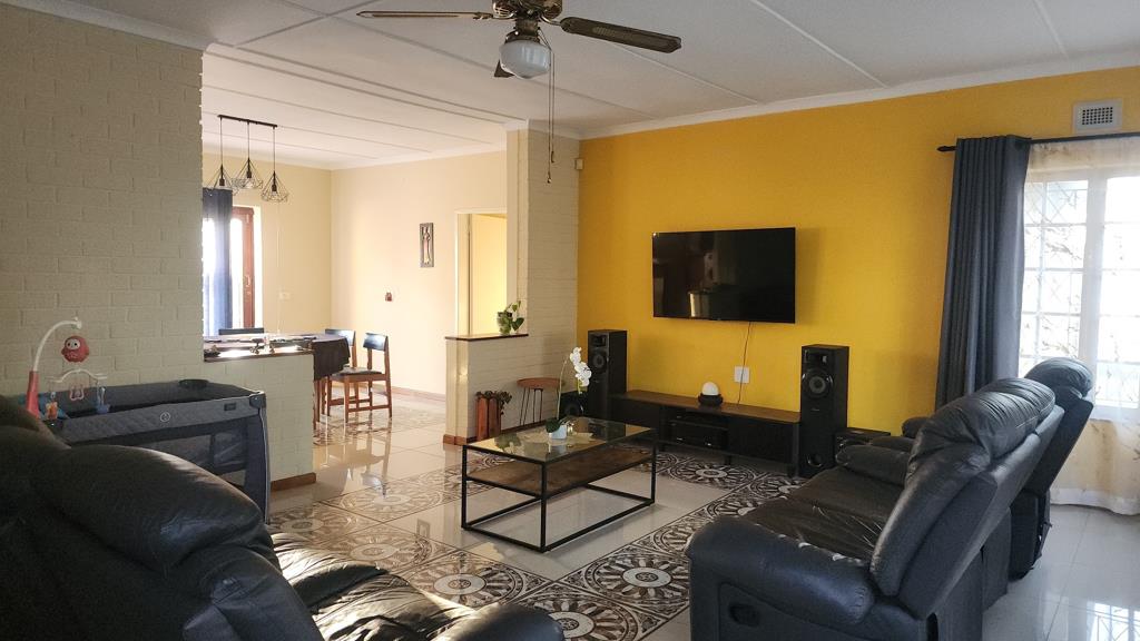 The home has three bedrooms, providing ample space for a family. The master bedroom includes an en-suite bathroom, while the other two bedrooms share a second, well-appointed bathroom. A double garage offers secure parking and extra storage. Outside, the flat piece of land is easily maintained and includes a private swimming pool, perfect for cooling off on warm days. The grounds are simply landscaped, with grassy area and is paved around the pool, creating a perfect space for relaxation and entertaining without extensive upkeep. Bonus is a one bedroom and open plan flat. Contact me to view this lovely home.