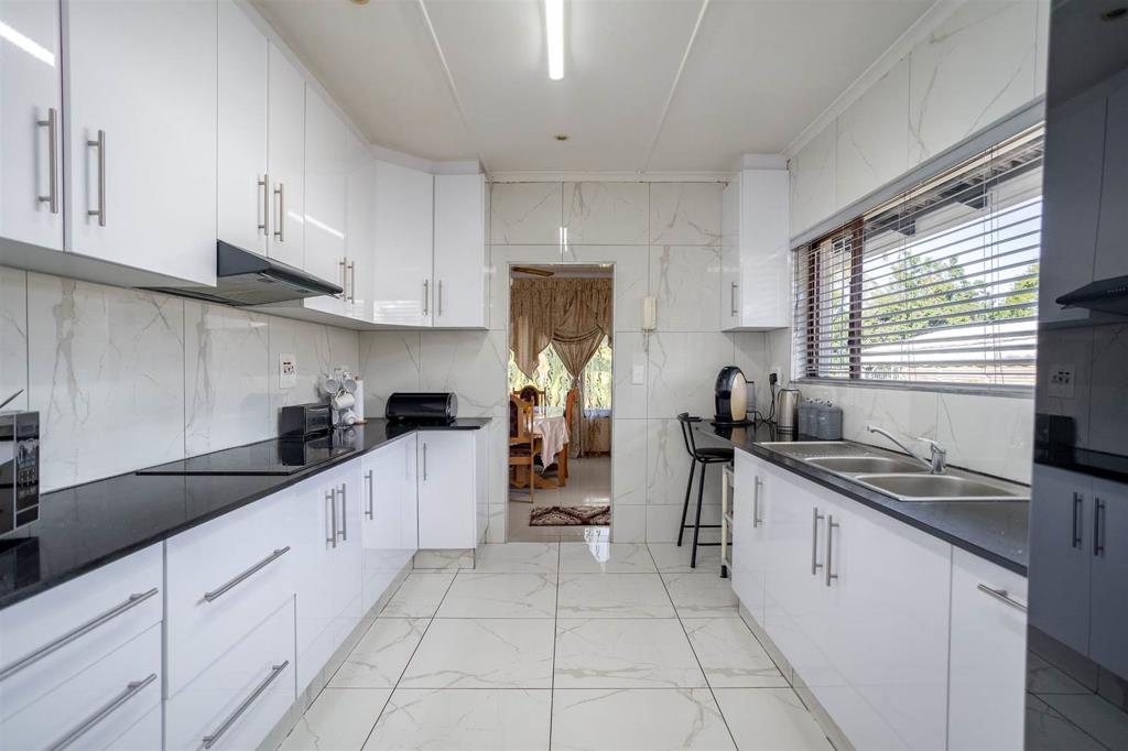 Kitchen: The kitchen is equipped with fitted cupboards, a wood window with blinds, and a scullery area featuring a sink, fitted cupboards, and a convenient back exit door.