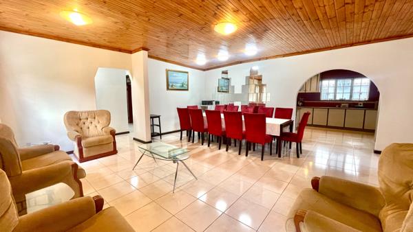 The property''s prime location offers unparalleled convenience, with access to essential amenities such as schools, shopping centers, and entertainment venues. Ample parking is available, including a spacious driveway. Adding to the property''s appeal is a modern, fully tiled outhouse, featuring a bedroom and an open-plan lounge and dining room, offering versatile living space.