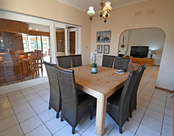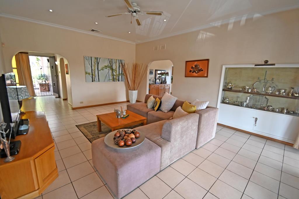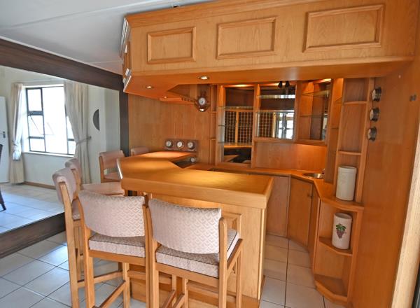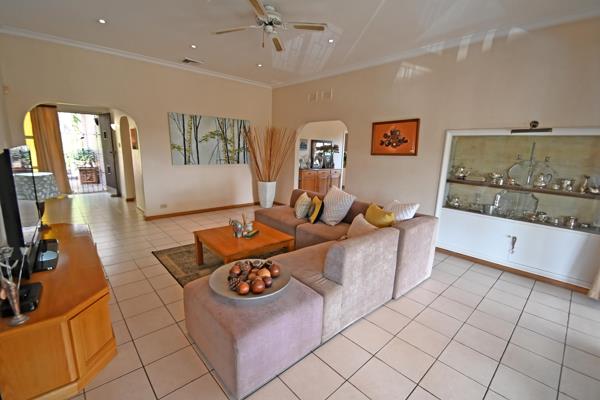 The main residence welcomes you with a generous entrance hall that flows into a bright, airy formal lounge featuring high ceilings and a cozy built-in fireplace. The separate dining room leads seamlessly from a spacious oak and melamine kitchen equipped with a central island, gas hob, double electric oven, scullery, and laundry area. An inviting bar areaeasily converted into a second loungeadds to the entertainment appeal. Two beautiful entertainment spaces, including a fully enclosed area, overlook the private swimming pool and lush garden. A large, tiled braai patio on pool level enhances the outdoor experience. The home features four well-sized bedrooms with air conditioning, ceiling fans, and ample built-in storage. The master suite is a peaceful retreat with a full en suite and spa bath, while the additional three bedrooms share a full family bathroom and separate toilet.