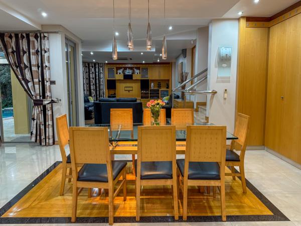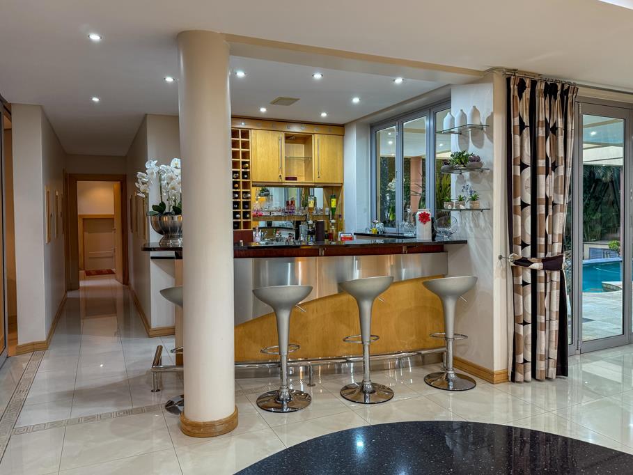 Situated on an impressive 2,200m2 estate, the lush, manicured gardens and generous outdoor spaces offer a tranquil retreat amidst Beverly Hills most sought-after surroundings. A self-contained helpers quarters ensures convenience, while the double garage and ample off street parking cater to effortless hosting.