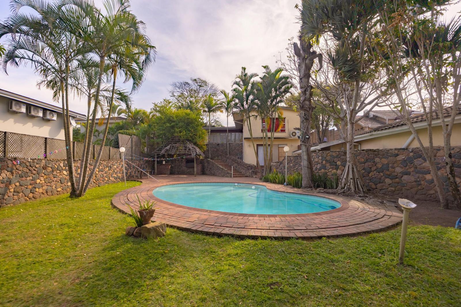 Enjoy the serenity of a private swimming pool nestled within lush grounds