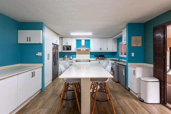 Upstairs, the home includes three bedrooms and a full family bathroom. The master bedroom features an ensuite with a shower and toilet. Additional amenities include staff accommodation, an automated garage with extra carport parking, and a comprehensive security system with exterior beams and surveillance cameras. Contact HUNT Properties to view.