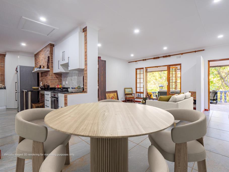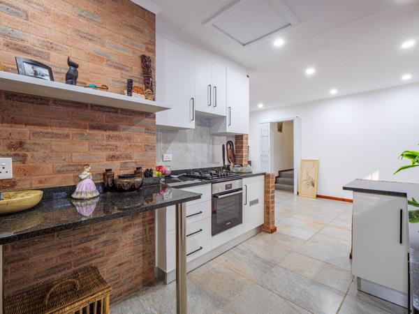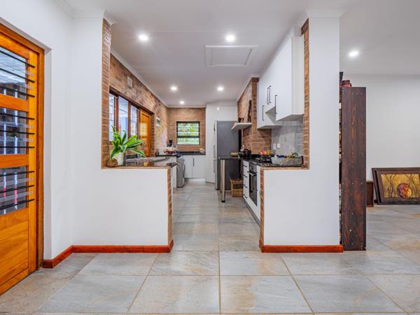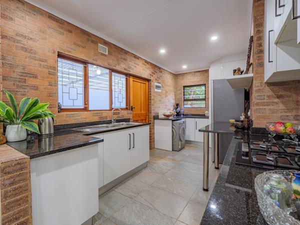 The open-plan lounge and dining area is airy, bright, and made for easy living, with sliding doors that spill onto a partially covered verandah overlooking peaceful, tree-framed views. The separate kitchen strikes the perfect balance between charm and practicality, featuring exposed brick finishes, granite countertops, a gas stove, pantry, and joint scullery - ready for everything from quick weeknight suppers to indulgent Sunday feasts.