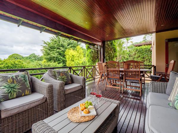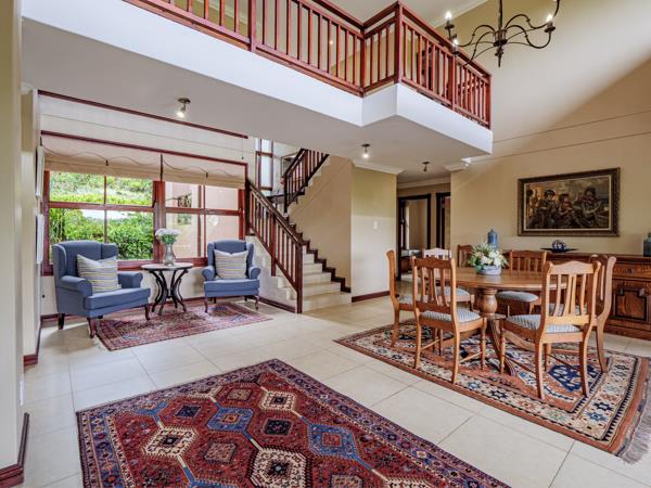 The lower level unfolds into a variety of light-filled spaces designed for living and entertaining. The dining area flows seamlessly onto an entertainment deck, where tranquil surroundings set the stage for intimate moments or unforgettable celebrations. A spacious lounge welcomes you to relax and unwind, while the adjacent galley kitchen strikes the perfect balance of style and functionality. A joint scullery enhances efficiency, connecting to a utility courtyard. This level also includes a separate lounge that opens to the garden area, as well as a private home office and guest loo. A lush green paradise of sloped lawns invite little adventurers and furry friends to explore.