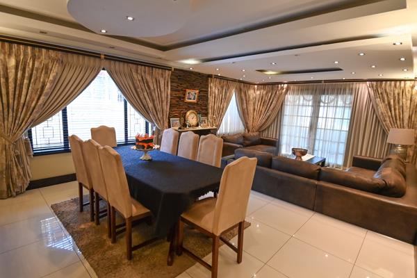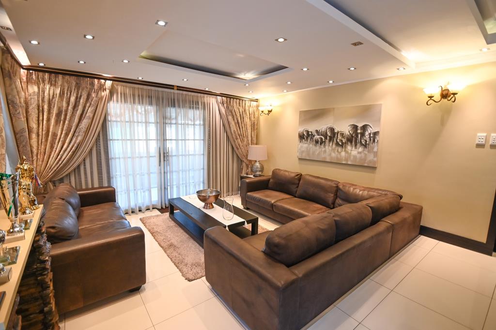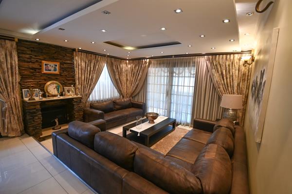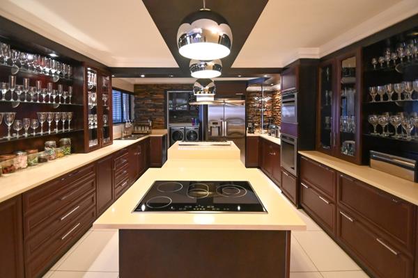 At the heart of the home lies a gourmet kitchen dressed in rich cherry wood cabinetry and complemented by a separate scullery the dream setup for anyone who loves to cook or entertain. The kitchen flows effortlessly into expansive open-plan living areas, where neutral tones set a calming, welcoming atmosphere.